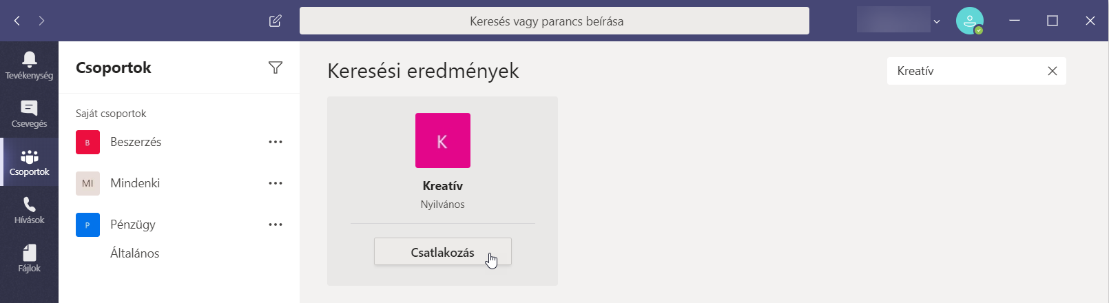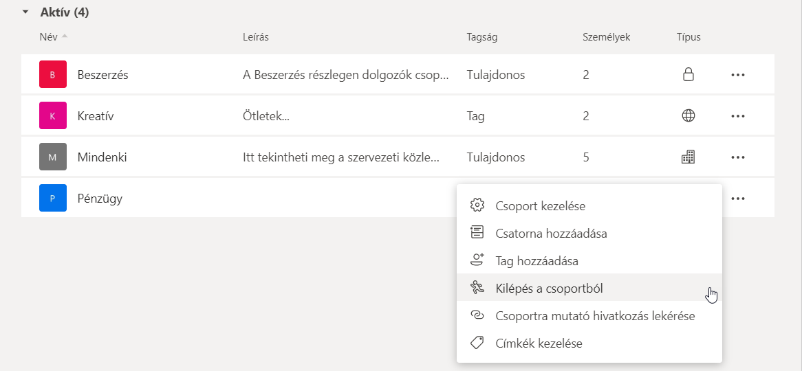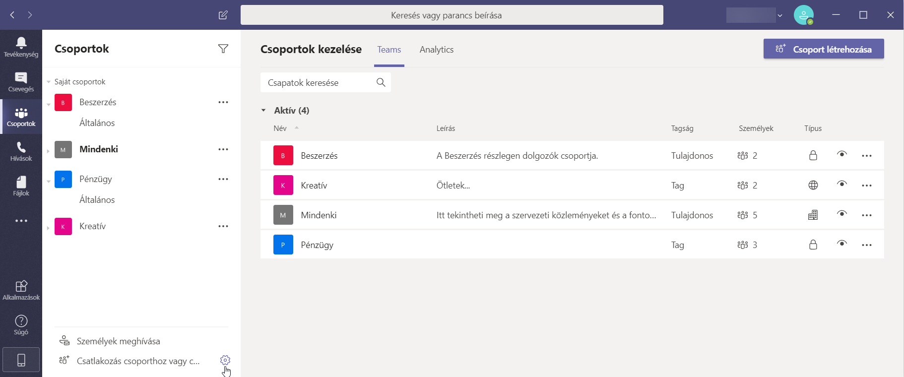 A csoportok megtekintéséhez kattintsunk a bal oldali sávon a Csoportok gombra!