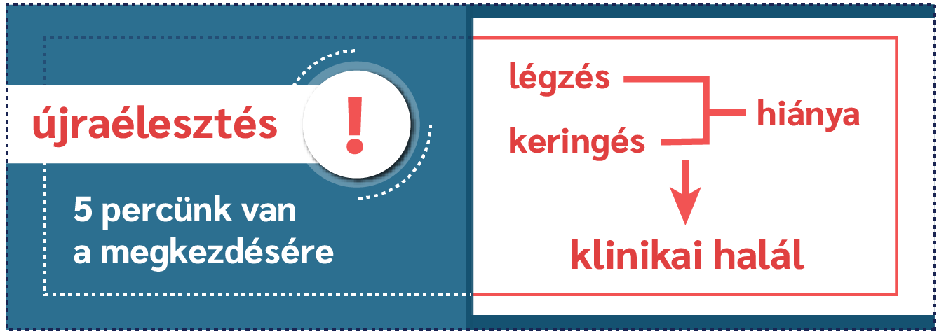 A légzés és keringés leállása után körülbelül 5 percünk van az újraélesztés megkezdésére. Ezt az időt az agyi idegsejtek oxigénhiány-tűrőképessége határozza meg. Tehát ennyi időn belül el kell kezdenünk az újraélesztést! Ez a klinikai halál időszaka. Amennyiben késlekedünk, nem cselekszünk, a később elkezdett újraélesztés minden bizonnyal sikertelen lesz!